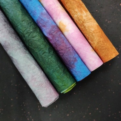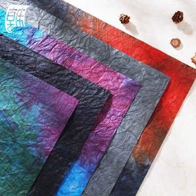 纸张采用纯天然植物纤维原料制成,纸张肌理天然偶成,多姿多彩,极富东方神韵,不失现代美感。纸浆中加入进口颜料进行调色,色泽纯正,明快艳丽,且不会褪色。