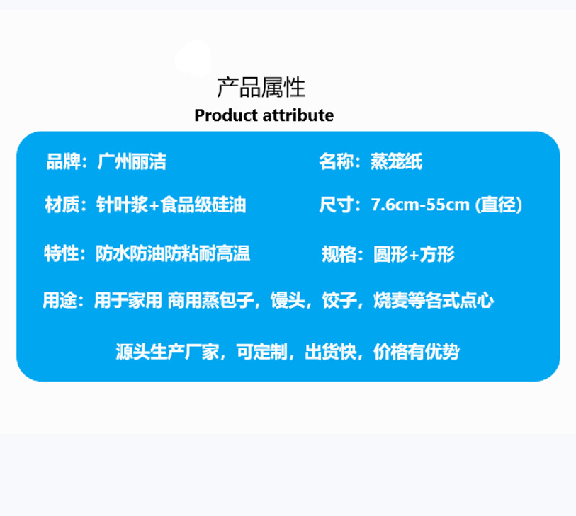 本网页所展示的有关【批发食品级蒸笼垫纸蒸包子纸硅油纸圆形笼屉纸烘焙纸一次性蒸笼纸_生活用纸_广州市番禺区大石丽洁纸业加工厂】的信息/图片/参数等由德茂源毅丰的会员【广州市番禺区大石丽洁纸业加工厂】提供,由德茂源毅丰会员【广州市番禺区大石丽洁纸业加工厂】自行对信息/图片/参数等的真实性、准确性和合法性负责,本平台(本网站)仅提供展示服务,请谨慎交易,因交易而产生的法律关系及法律纠纷由您自行协商解决,本平台(本网站)对此不承担任何责任。您在本网页可以浏览【批发食品级蒸笼垫纸蒸包子纸硅油纸圆形笼屉纸烘焙纸一次性蒸笼纸_生活用纸_广州市番禺区大石丽洁纸业加工厂】有关的信息/图片/价格等及提供【批发食品级蒸笼垫纸蒸包子纸硅油纸圆形笼屉纸烘焙纸一次性蒸笼纸_生活用纸_广州市番禺区大石丽洁纸业加工厂】的商家公司简介、联系方式等信息。