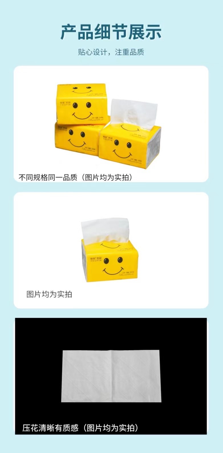 本网页所展示的有关【卫生纸笑脸抽纸实惠装纸巾餐馆地摊批发饭店餐饮餐巾纸实惠70包_抽纸_德阳市盛欣纸业有限责任公司】的信息/图片/参数等由德茂源毅丰的会员【德阳市盛欣纸业有限责任公司】提供,由德茂源毅丰会员【德阳市盛欣纸业有限责任公司】自行对信息/图片/参数等的真实性、准确性和合法性负责,本平台(本网站)仅提供展示服务,请谨慎交易,因交易而产生的法律关系及法律纠纷由您自行协商解决,本平台(本网站)对此不承担任何责任。您在本网页可以浏览【卫生纸笑脸抽纸实惠装纸巾餐馆地摊批发饭店餐饮餐巾纸实惠70包_抽纸_德阳市盛欣纸业有限责任公司】有关的信息/图片/价格等及提供【卫生纸笑脸抽纸实惠装纸巾餐馆地摊批发饭店餐饮餐巾纸实惠70包_抽纸_德阳市盛欣纸业有限责任公司】的商家公司简介、联系方式等信息。