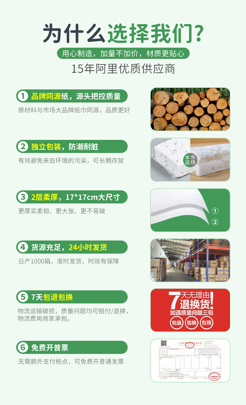 温馨提示:因纸巾装箱规格为100/200/300/500包/箱、亲下单时请按100/200/300/500包的整数倍来拍,否则不发货,例:拍下【A纸30抽/500包/箱】的,拍下100包到499包之间,不发货,装箱规格限制,请体谅!