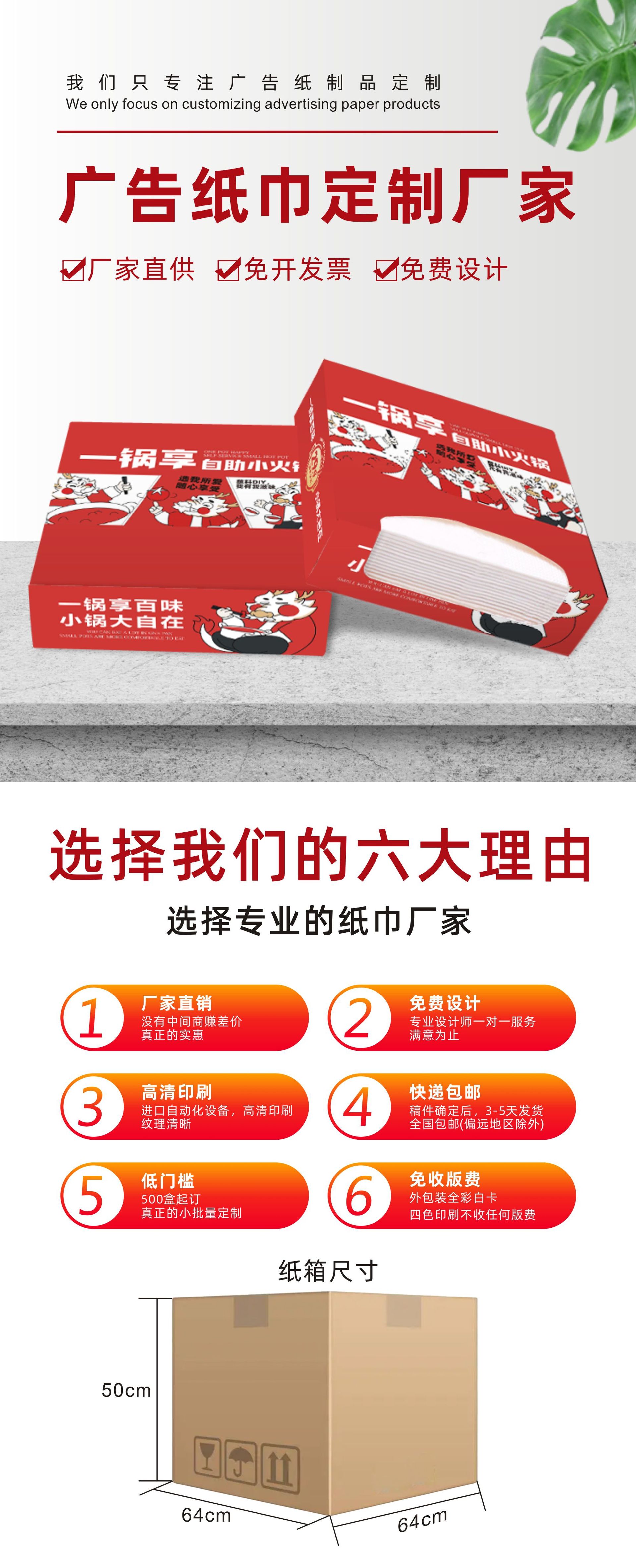 本网页所展示的有关【抽纸定制广告印logo加油站定做盒装纸巾公司宣传活动盒抽餐巾纸抽_抽纸_河南乐诚卫生用品有限公司】的信息/图片/参数等由德茂源毅丰的会员【河南乐诚卫生用品有限公司】提供,由德茂源毅丰会员【河南乐诚卫生用品有限公司】自行对信息/图片/参数等的真实性、准确性和合法性负责,本平台(本网站)仅提供展示服务,请谨慎交易,因交易而产生的法律关系及法律纠纷由您自行协商解决,本平台(本网站)对此不承担任何责任。您在本网页可以浏览【抽纸定制广告印logo加油站定做盒装纸巾公司宣传活动盒抽餐巾纸抽_抽纸_河南乐诚卫生用品有限公司】有关的信息/图片/价格等及提供【抽纸定制广告印logo加油站定做盒装纸巾公司宣传活动盒抽餐巾纸抽_抽纸_河南乐诚卫生用品有限公司】的商家公司简介、联系方式等信息。
