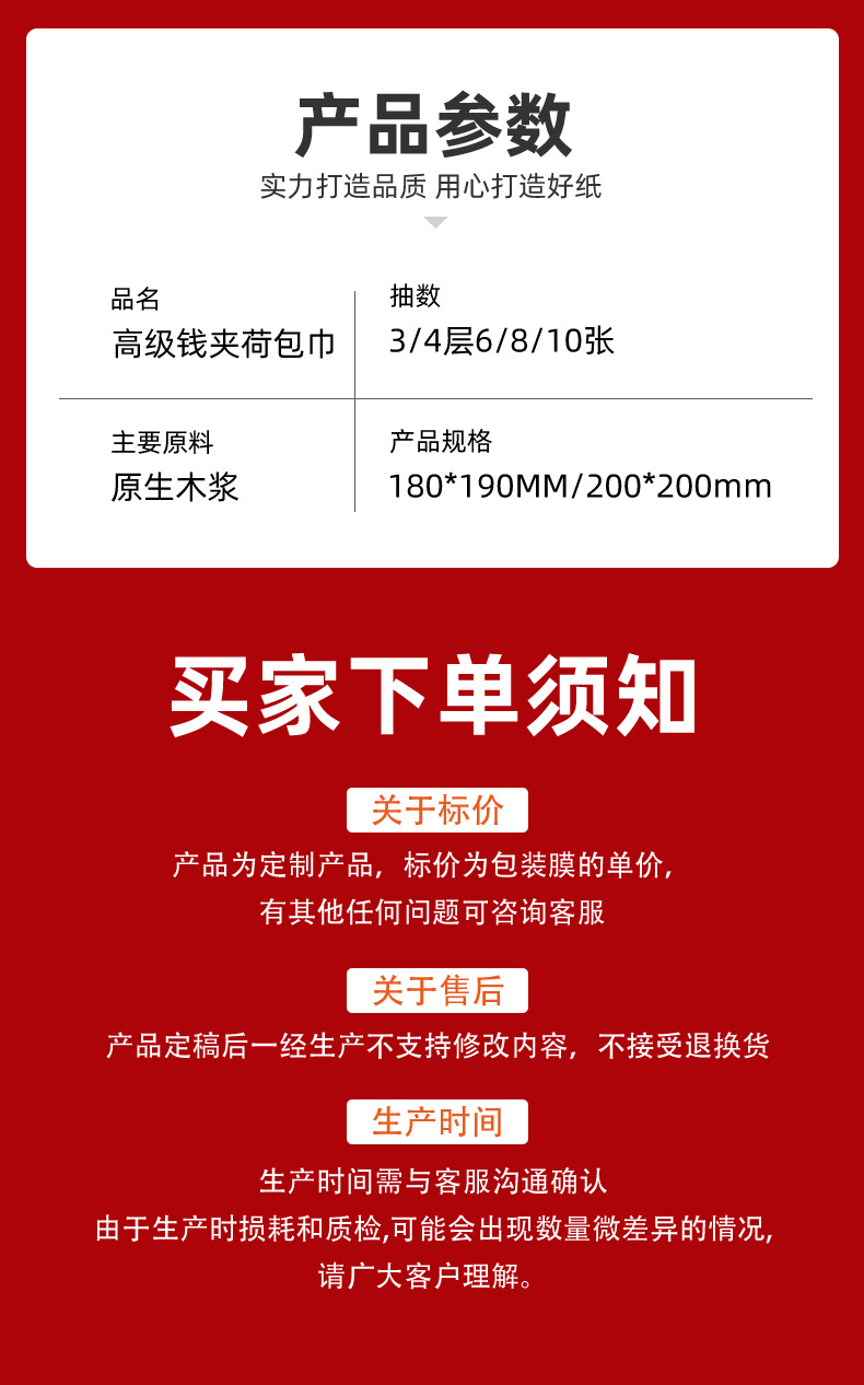 本网页所展示的有关【广告荷包纸巾定制可印logo餐厅酒店饭店宣传小包钱夹式纸巾定做_餐巾纸_深圳市洁净纸业有限公司】的信息/图片/参数等由德茂源毅丰的会员【深圳市洁净纸业有限公司】提供,由德茂源毅丰会员【深圳市洁净纸业有限公司】自行对信息/图片/参数等的真实性、准确性和合法性负责,本平台(本网站)仅提供展示服务,请谨慎交易,因交易而产生的法律关系及法律纠纷由您自行协商解决,本平台(本网站)对此不承担任何责任。您在本网页可以浏览【广告荷包纸巾定制可印logo餐厅酒店饭店宣传小包钱夹式纸巾定做_餐巾纸_深圳市洁净纸业有限公司】有关的信息/图片/价格等及提供【广告荷包纸巾定制可印logo餐厅酒店饭店宣传小包钱夹式纸巾定做_餐巾纸_深圳市洁净纸业有限公司】的商家公司简介、联系方式等信息。