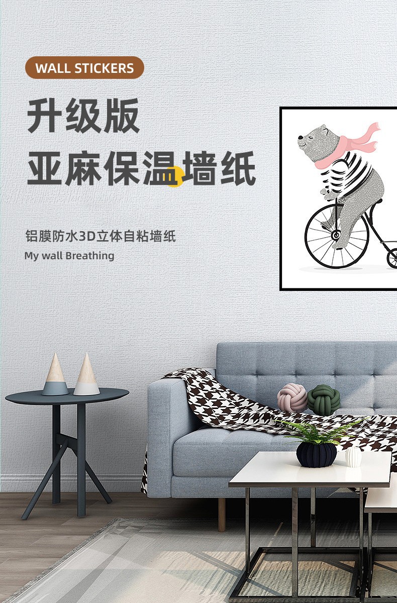 本网页所展示的有关【3D立体墙贴亚麻软包抑菌墙纸自粘掉灰墙遮丑防水防潮壁纸卧室翻新_墙纸壁纸_台州市瑞霖新材料有限公司】的信息/图片/参数等由德茂源毅丰的会员【台州市瑞霖新材料有限公司】提供,由德茂源毅丰会员【台州市瑞霖新材料有限公司】自行对信息/图片/参数等的真实性、准确性和合法性负责,本平台(本网站)仅提供展示服务,请谨慎交易,因交易而产生的法律关系及法律纠纷由您自行协商解决,本平台(本网站)对此不承担任何责任。您在本网页可以浏览【3D立体墙贴亚麻软包抑菌墙纸自粘掉灰墙遮丑防水防潮壁纸卧室翻新_墙纸壁纸_台州市瑞霖新材料有限公司】有关的信息/图片/价格等及提供【3D立体墙贴亚麻软包抑菌墙纸自粘掉灰墙遮丑防水防潮壁纸卧室翻新_墙纸壁纸_台州市瑞霖新材料有限公司】的商家公司简介、联系方式等信息。