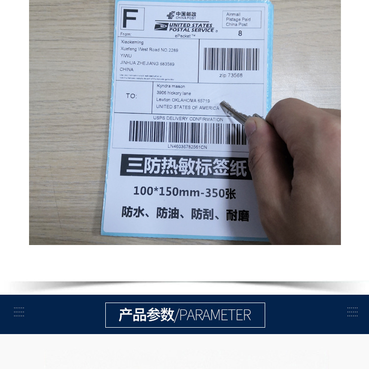 本网页所展示的有关【三防热敏标签纸100*150单张折叠E邮宝长方形不干胶贴纸印刷_不干胶纸_义乌市鼎世包装制品厂】的信息/图片/参数等由德茂源毅丰的会员【义乌市鼎世包装制品厂】提供,由德茂源毅丰会员【义乌市鼎世包装制品厂】自行对信息/图片/参数等的真实性、准确性和合法性负责,本平台(本网站)仅提供展示服务,请谨慎交易,因交易而产生的法律关系及法律纠纷由您自行协商解决,本平台(本网站)对此不承担任何责任。您在本网页可以浏览【三防热敏标签纸100*150单张折叠E邮宝长方形不干胶贴纸印刷_不干胶纸_义乌市鼎世包装制品厂】有关的信息/图片/价格等及提供【三防热敏标签纸100*150单张折叠E邮宝长方形不干胶贴纸印刷_不干胶纸_义乌市鼎世包装制品厂】的商家公司简介、联系方式等信息。
