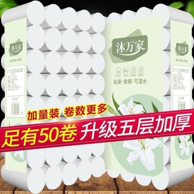 卫生纸50卷家庭卷纸批发工厂原生木浆实惠装卫生纸卷厕所纸巾