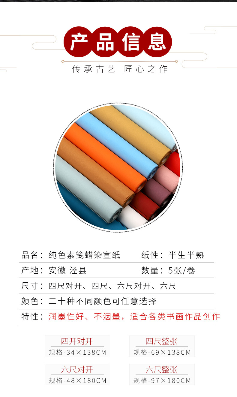彩色蜡染宣纸纯色粉彩半生熟书法专用行书草书小楷国展投稿作品纸