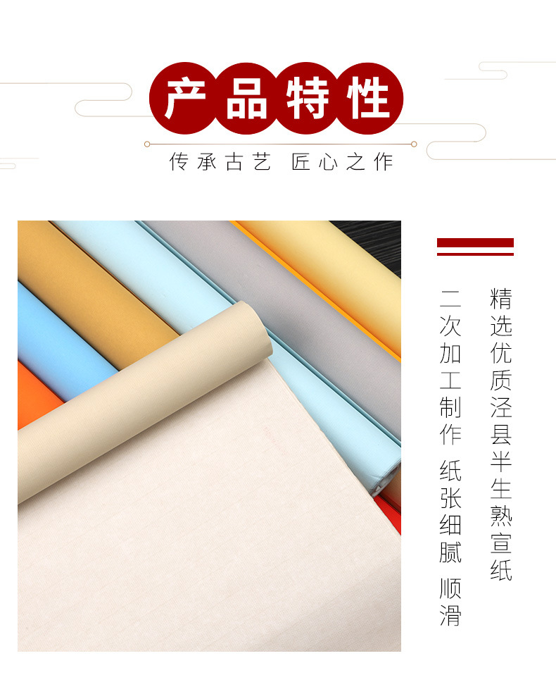 复古风祥云瓦当对联作品纸宣纸长卷书法毛笔字创作专用加厚长卷纸