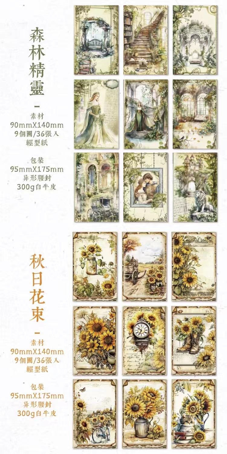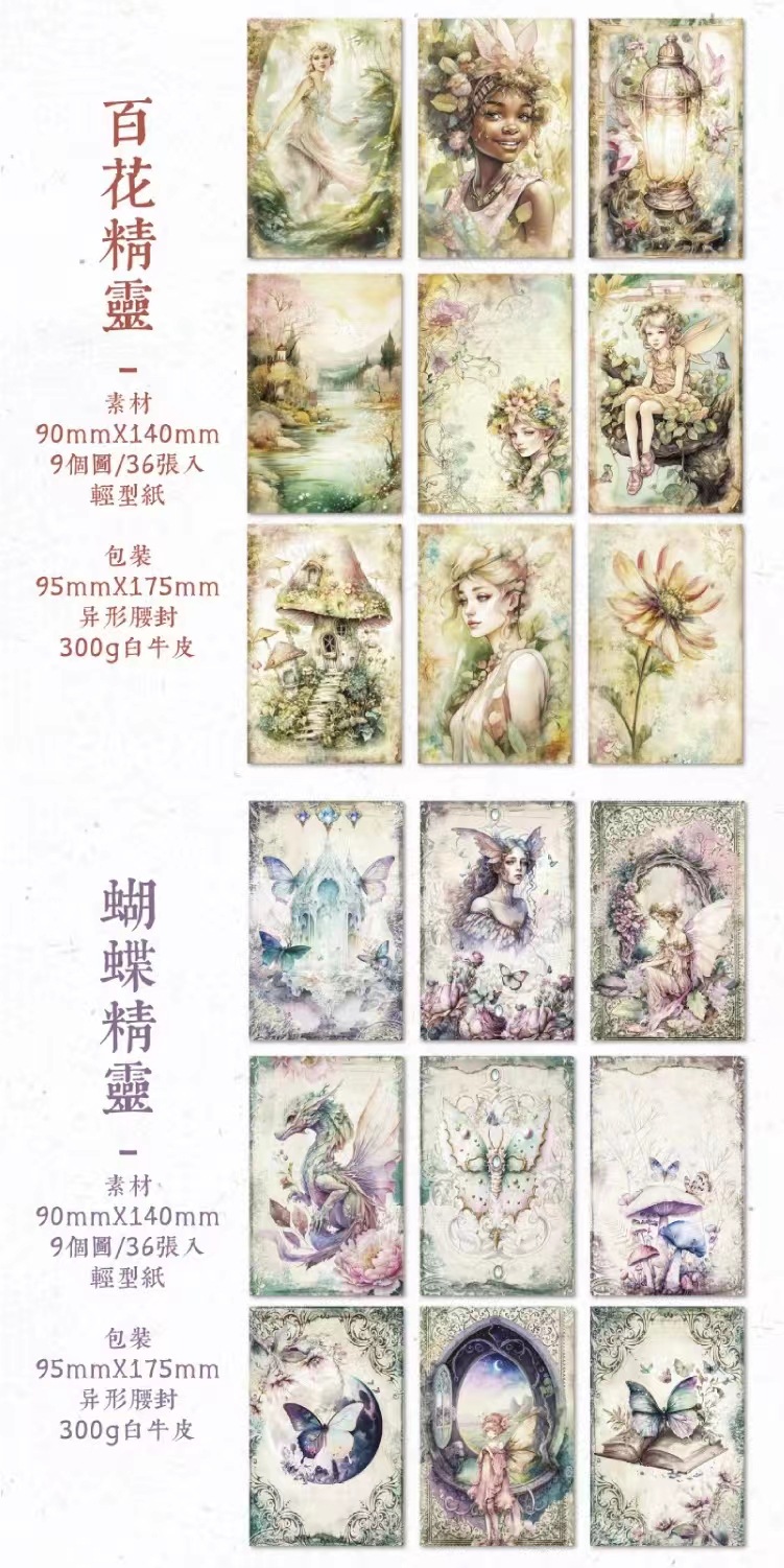 颜色 | 6-1.百花精灵,6-2.蝴蝶精灵,6-3.森林精灵,6-4.秋日花束 | 材质 | 轻型纸 |