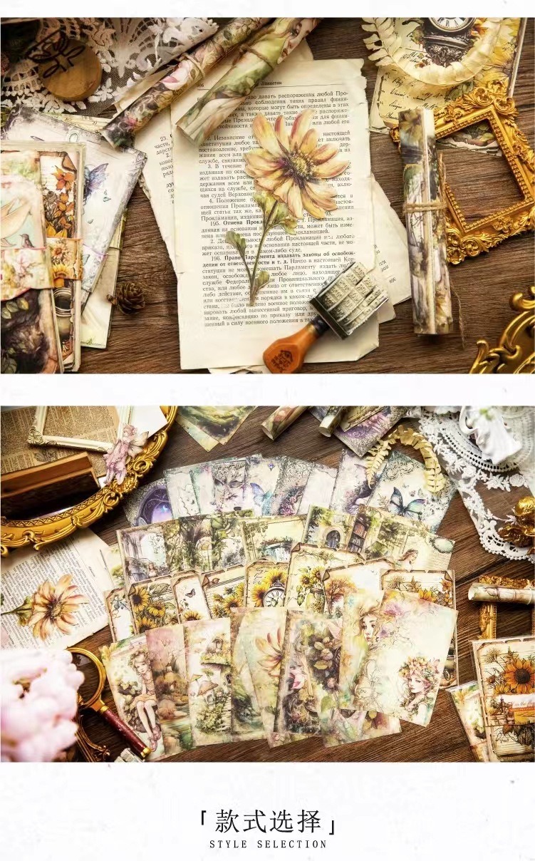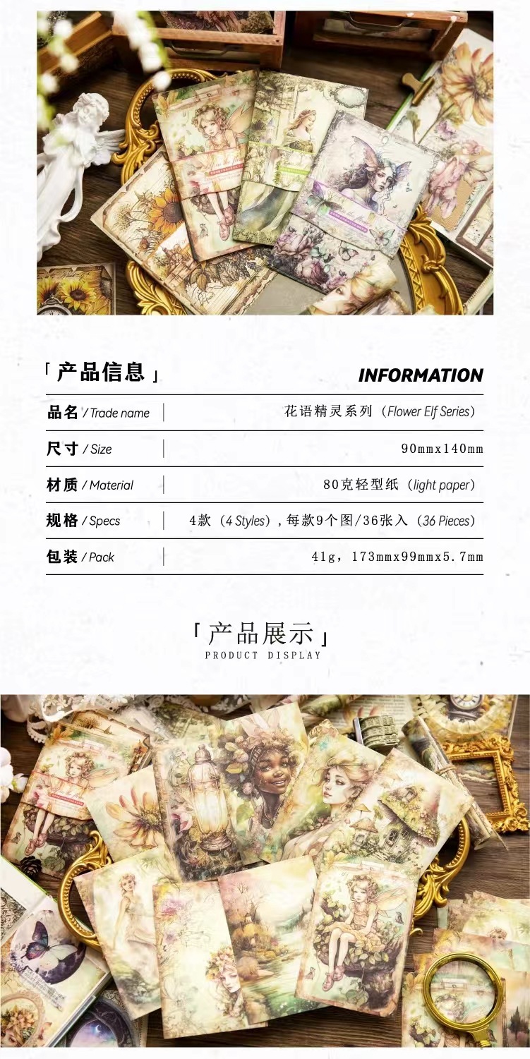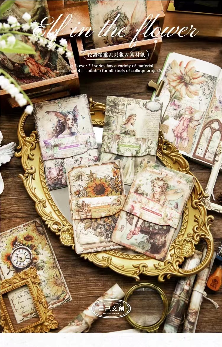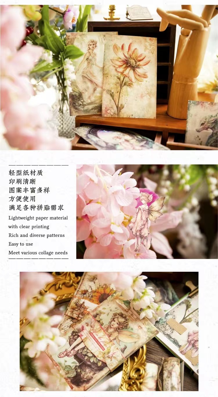 工艺 | 印刷 | 货号 | 6-花语精灵系列人物花卉复古欧式手账DIY轻型纸造景插画创意素材纸 |