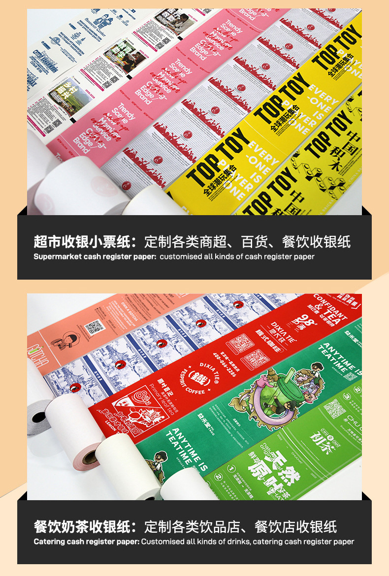 定制印刷57热敏收银纸印刷80外卖超市饭店小票纸餐饮奶茶店打印纸