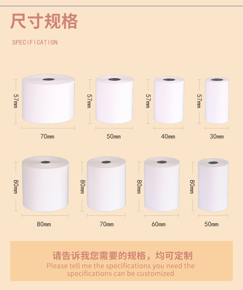 热敏纸规格印刷57*50定制80x80(mm)