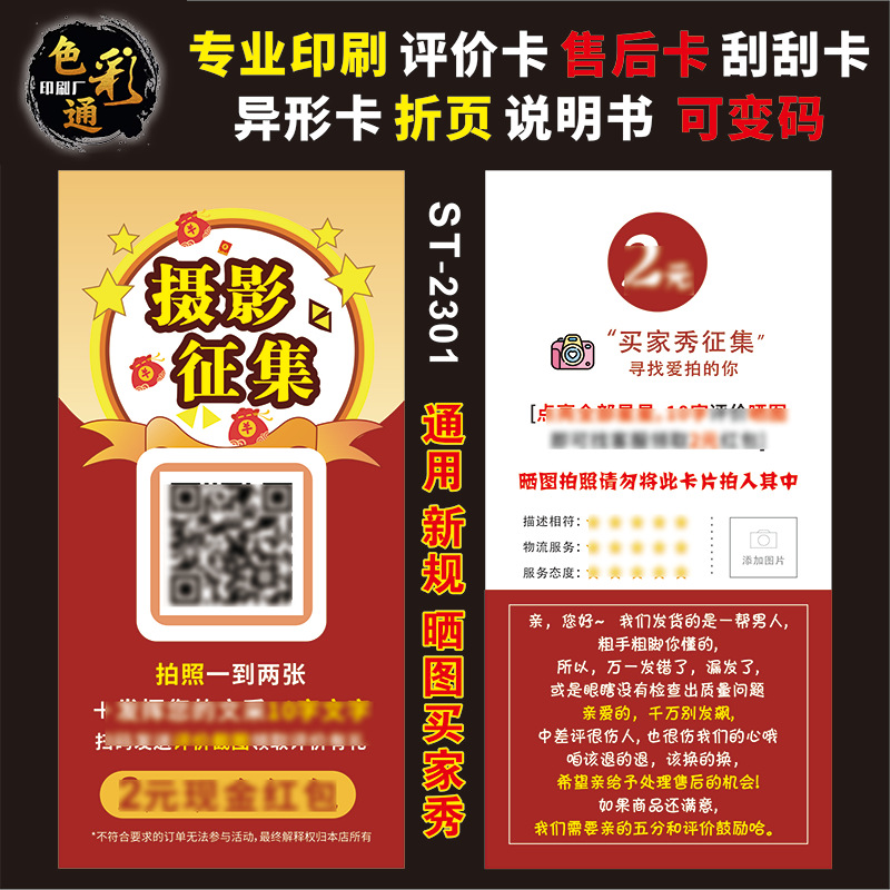 货号评价卡 售后服务 产品保修说明等