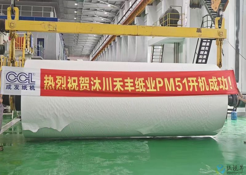 7月19日,泰盛集团四川禾丰纸业年产15万吨特种纸项目成功开机投产。该项目纸机幅宽5600mm,设计车速1000m/min,主体设备由乐山成发提供。