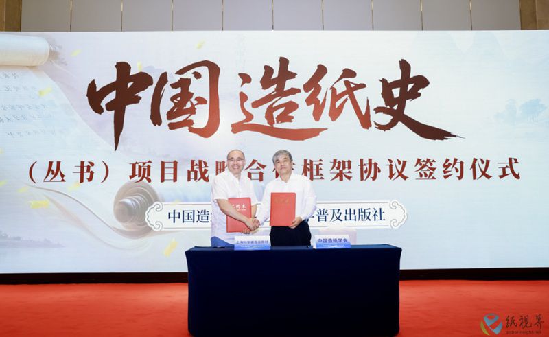 为记载中国造纸工业的变迁历程与创新成就,中国造纸学会和上海科学普及出版社有限责任公司合作组织策划《中国造纸史》系列丛书的编撰、出版、发行工作。2025年8月12日,2025年中国国际造纸创新发展论坛开幕式上,中国造纸学会曹春昱理事长与上海科学普及出版社陈丹社长作为双方代表签署合作协议,启动系列丛书的编撰工作。