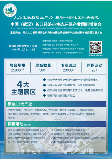 由民革湖北省委会、生态环境部长江流域生态环境监督管理局、湖北省生态环境厅、武汉大学、华中科技大学、中国地质大学(武汉)、湘潭大学、中国环境保护产业协会与长江生态环保集团有限公司指导,湖北省环境保护产业协会主办,宝武环科武汉金属资源有限公司、中建三局绿色产业投资有限公司、长环国际会展(湖北)有限公司承办,中国海洋学会海水淡化与水再利用分会战略支持,长江经济带各省市环保产业协会协办的“2024湖北大力发展新质生产力加快推动节能环保产业链创新与高质量发展大会暨中国(武汉)长江经济带生态环保产业国际博览会”将于2024年10月11-13日在武汉国际博览中心盛大举行!