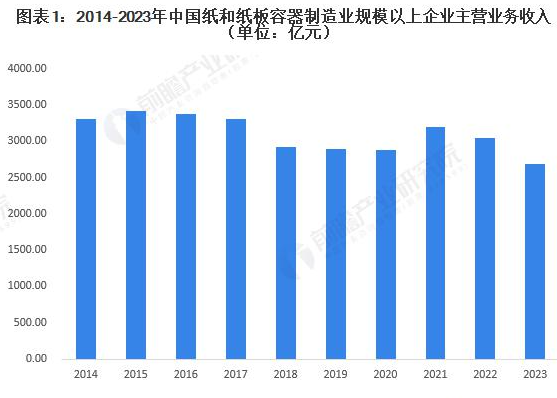 我国包装行业的产品主要包括纸包装、塑料包装、金属包装、玻璃包装、包装机械。其中,纸包装是包装行业最重要的组成部分,在食品、药品、家用电器、文化用品等领域广泛应用。2023 年,纸和纸板容器制造业规模以上企业实现主营业务收入 2682.57 亿元,同比下降 4.44%,占整个包装产业规模以上企业主营业务收入的 23.25%,是包装行业第二大细分市场。