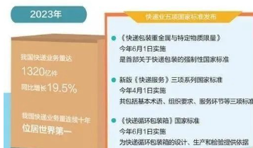 近年来,我国快递业持续快速发展,快递业务量连续十年位居世界第一。为进一步规范邮政行业发展,提升快递服务质量水平,推动快递业绿色低碳发展,国家标准委发布了五项国家标准,为打造更绿色、更安全、更便利的快递业提供技术支撑。