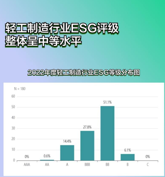 根据中诚信绿金统计,截至2023年12月31日,A股和中资港股上市公司共6295家,2741家披露了2022年度ESG相关报告;188家轻工制造行业上市公司中,披露2022年度ESG相关报告的公司共79家,披露率为42.02%。