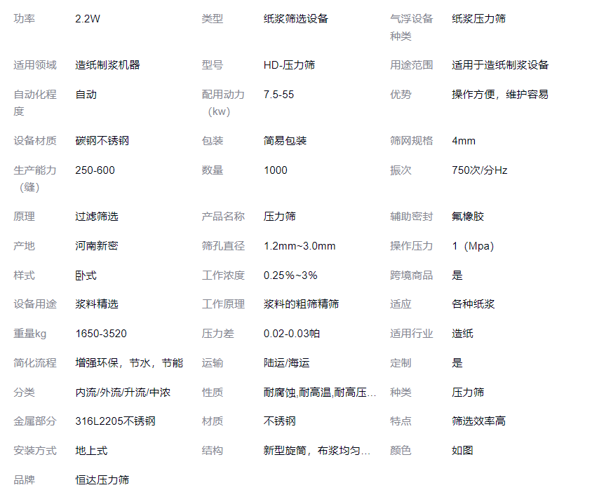 立即发布求购意向本网页所展示的有关【恒达造纸 专业纸浆筛选 不锈钢压力筛 耐用寿命长_压力筛(孔筛/缝筛)_郑州恒达造纸设备有限公司】的信息/图片/参数等由德茂源毅丰的会员【郑州恒达造纸设备有限公司】提供,由德茂源毅丰会员【郑州恒达造纸设备有限公司】自行对信息/图片/参数等的真实性、准确性和合法性负责,本平台(本网站)仅提供展示服务,请谨慎交易,因交易而产生的法律关系及法律纠纷由您自行协商解决,本平台(本网站)对此不承担任何责任。您在本网页可以浏览【恒达造纸 专业纸浆筛选 不锈钢压力筛 耐用寿命长_压力筛(孔筛/缝筛)_郑州恒达造纸设备有限公司】有关的信息/图片/价格等及提供【恒达造纸 专业纸浆筛选 不锈钢压力筛 耐用寿命长_压力筛(孔筛/缝筛)_郑州恒达造纸设备有限公司】的商家公司简介、联系方式等信息。