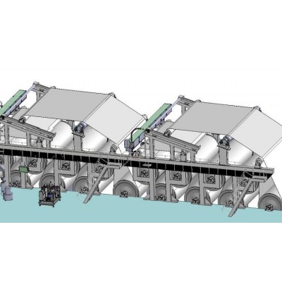 干网清洗系统概述1.工作原理干网在线清洗系统有在线清洗和停机清洗两种模式。清洗头有7个高压喷嘴,泵站将高压水增压到200-600bar,通过喷嘴以一定角度喷向辊面的干网在辊面上的压区,将污物打飞,形成雾状被吸入排污槽通过真空系统排出。压缩空气产生气对干网进行下一步清洗,避免水纹与黑斑的产生。2.系统优势a.连续在线清洁干网可实现纸机无故障运行,增加稳定性;b.无需使用化学药剂清洗即可保证干网洁净度;c.无需停机清洗,提高了纸机的生产时长;d.提高干网透气度,提升干燥效果,降低能耗;e.避免因干燥不均匀导致的纸张卷曲;f.连续清洗减少纸病及纸业断头;g.避免污物沉积于光压或软压光机。