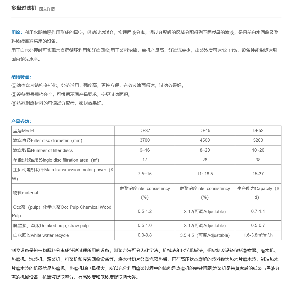利用水腿抽吸作用形成的真空,借助过滤媒介,实现固液分离,通过分配阀的区域分配得到不同质量的滤液,是目前白水回收及浆料浓缩普遍采用的设备。