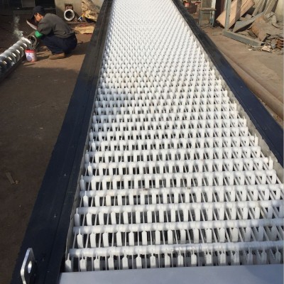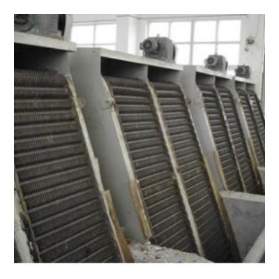 该设备是由ABS工程塑料、尼龙或不锈钢制成的特殊形耙齿,按一定的排列次序装在耙齿轴上形成封闭式耙齿链,其下部装在进水渠水中。当传动系统带动链轮作匀速定向旋转时,整个耙齿链便自上而下运动,并携带固体杂物从液体中分离出来,流体通过耙齿间隙流出去,整个工作状态连续进行。