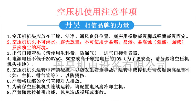 本网页所展示的有关【无油空压机8公斤增压气泵美容用活塞静音空气压缩机 小型空压机头_空压机_丹阳丹昊机电设备有限公司】的信息/图片/参数等由德茂源毅丰的会员【丹阳丹昊机电设备有限公司】提供,由德茂源毅丰会员【丹阳丹昊机电设备有限公司】自行对信息/图片/参数等的真实性、准确性和合法性负责,本平台(本网站)仅提供展示服务,请谨慎交易,因交易而产生的法律关系及法律纠纷由您自行协商解决,本平台(本网站)对此不承担任何责任。您在本网页可以浏览【无油空压机8公斤增压气泵美容用活塞静音空气压缩机 小型空压机头_空压机_丹阳丹昊机电设备有限公司】有关的信息/图片/价格等及提供【无油空压机8公斤增压气泵美容用活塞静音空气压缩机 小型空压机头_空压机_丹阳丹昊机电设备有限公司】的商家公司简介、联系方式等信息。