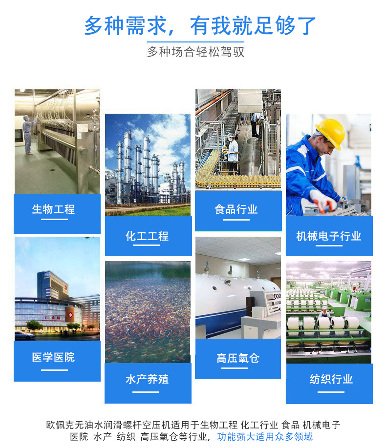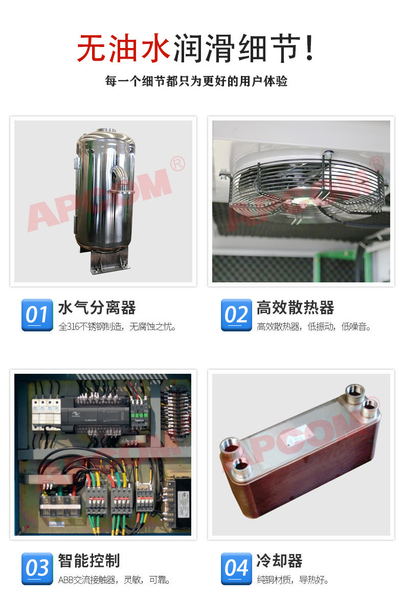 本网页所展示的有关【水润滑无油螺杆式空压机 22KW 风冷螺旋式永磁变频空气气泵压缩机_空压机_上海欧佩克机械设备有限公司】的信息/图片/参数等由德茂源毅丰的会员【上海欧佩克机械设备有限公司】提供,由德茂源毅丰会员【上海欧佩克机械设备有限公司】自行对信息/图片/参数等的真实性、准确性和合法性负责,本平台(本网站)仅提供展示服务,请谨慎交易,因交易而产生的法律关系及法律纠纷由您自行协商解决,本平台(本网站)对此不承担任何责任。您在本网页可以浏览【水润滑无油螺杆式空压机 22KW 风冷螺旋式永磁变频空气气泵压缩机_空压机_上海欧佩克机械设备有限公司】有关的信息/图片/价格等及提供【水润滑无油螺杆式空压机 22KW 风冷螺旋式永磁变频空气气泵压缩机_空压机_上海欧佩克机械设备有限公司】的商家公司简介、联系方式等信息。