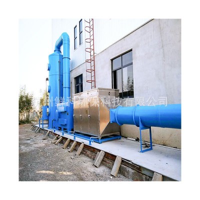 喷淋塔是一种以液体吸收形式的化工废气治理设备。广泛应用于电镀、化工、冶金、电子、医药、纺织、仪表、实验等行业,一般可以用于酸雾治理、除臭、工业除尘等环境中。特别适用于各种材料的酸洗工艺,对酸洗工艺过程中产生的酸雾(H2S04)、氯化氢(HCL)气体及氟化氢(HF)气体、铬酸雾(CrO3)、氰氢酸(HCN)气体、硫化氢(H2S)、氨气(NH3)、碱蒸汽等水溶性气体,净化率达95%以上,酸性气体净化设备属气液两相逆向流填料吸收塔。 该酸雾净化塔采用可采用一到三级喷淋、吸收处理,外壳全采用PP/玻璃钢/碳钢/不锈钢等材质制作,主体结构设有循环储水箱、填料层、喷淋层、丝网除雾层、检修人孔等结构,气液在罐体内接触充分,吸收净化后的废气大大低于国家排放标准,且设备操作方便、便于安装检修、维护方便、使用寿命长、占地面积小。是当前 理想的废气处理设备。