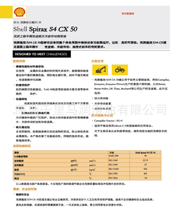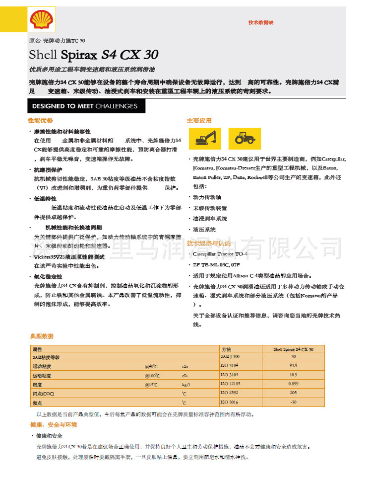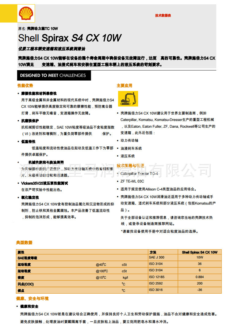 应用壳牌施倍力S4 CX 10W建议使用重型其中包括:动力换档变速箱终传动油浸泡刹车液压系统