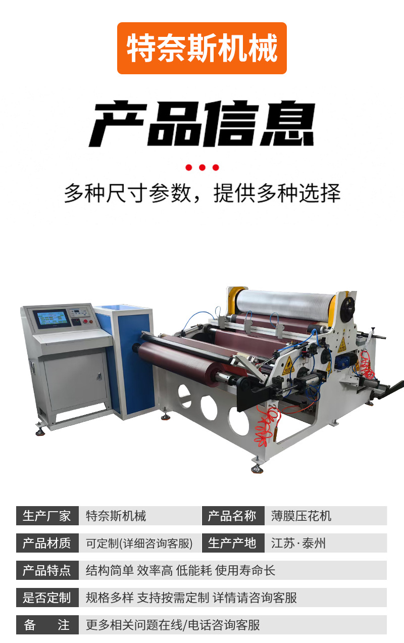 本网页所展示的有关【薄膜压花机塑料薄膜收卷压纹压花机纸巾图案花纹薄膜压花机供应_压花机_泰州市特奈斯机械设备制造有限公司】的信息/图片/参数等由德茂源毅丰的会员【泰州市特奈斯机械设备制造有限公司】提供,由德茂源毅丰会员【泰州市特奈斯机械设备制造有限公司】自行对信息/图片/参数等的真实性、准确性和合法性负责,本平台(本网站)仅提供展示服务,请谨慎交易,因交易而产生的法律关系及法律纠纷由您自行协商解决,本平台(本网站)对此不承担任何责任。您在本网页可以浏览【薄膜压花机塑料薄膜收卷压纹压花机纸巾图案花纹薄膜压花机供应_压花机_泰州市特奈斯机械设备制造有限公司】有关的信息/图片/价格等及提供【薄膜压花机塑料薄膜收卷压纹压花机纸巾图案花纹薄膜压花机供应_压花机_泰州市特奈斯机械设备制造有限公司】的商家公司简介、联系方式等信息。