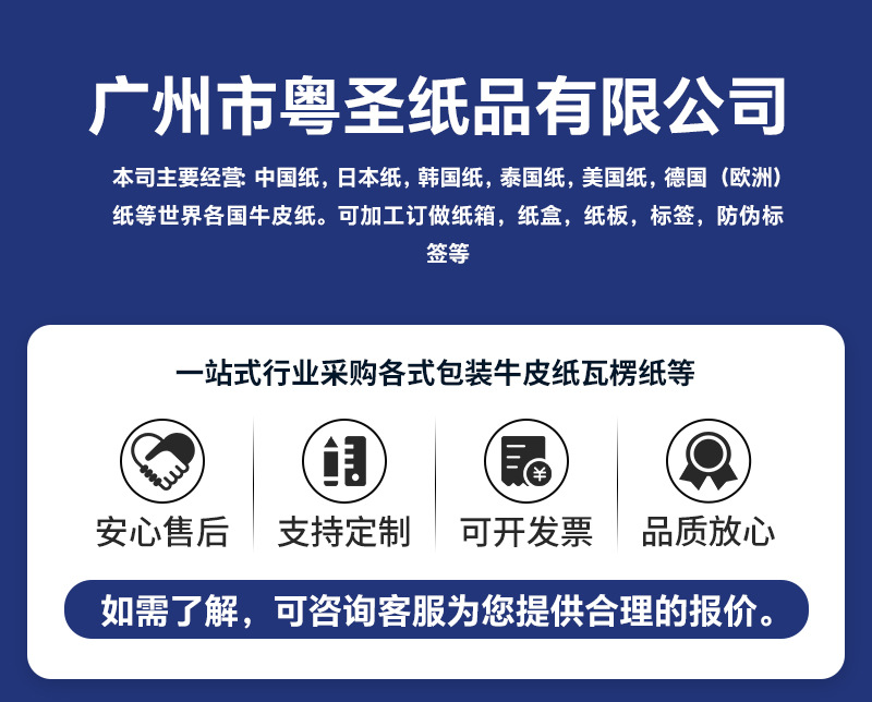 本网页所展示的有关【厂家直供175g进口白日本牛卡白色牛皮纸印刷纸箱包装食品级牛皮纸_牛皮纸_广州市粤圣纸品有限公司】的信息/图片/参数等由德茂源毅丰的会员【广州市粤圣纸品有限公司】提供,由德茂源毅丰会员【广州市粤圣纸品有限公司】自行对信息/图片/参数等的真实性、准确性和合法性负责,本平台(本网站)仅提供展示服务,请谨慎交易,因交易而产生的法律关系及法律纠纷由您自行协商解决,本平台(本网站)对此不承担任何责任。您在本网页可以浏览【厂家直供175g进口白日本牛卡白色牛皮纸印刷纸箱包装食品级牛皮纸_牛皮纸_广州市粤圣纸品有限公司】有关的信息/图片/价格等及提供【厂家直供175g进口白日本牛卡白色牛皮纸印刷纸箱包装食品级牛皮纸_牛皮纸_广州市粤圣纸品有限公司】的商家公司简介、联系方式等信息。